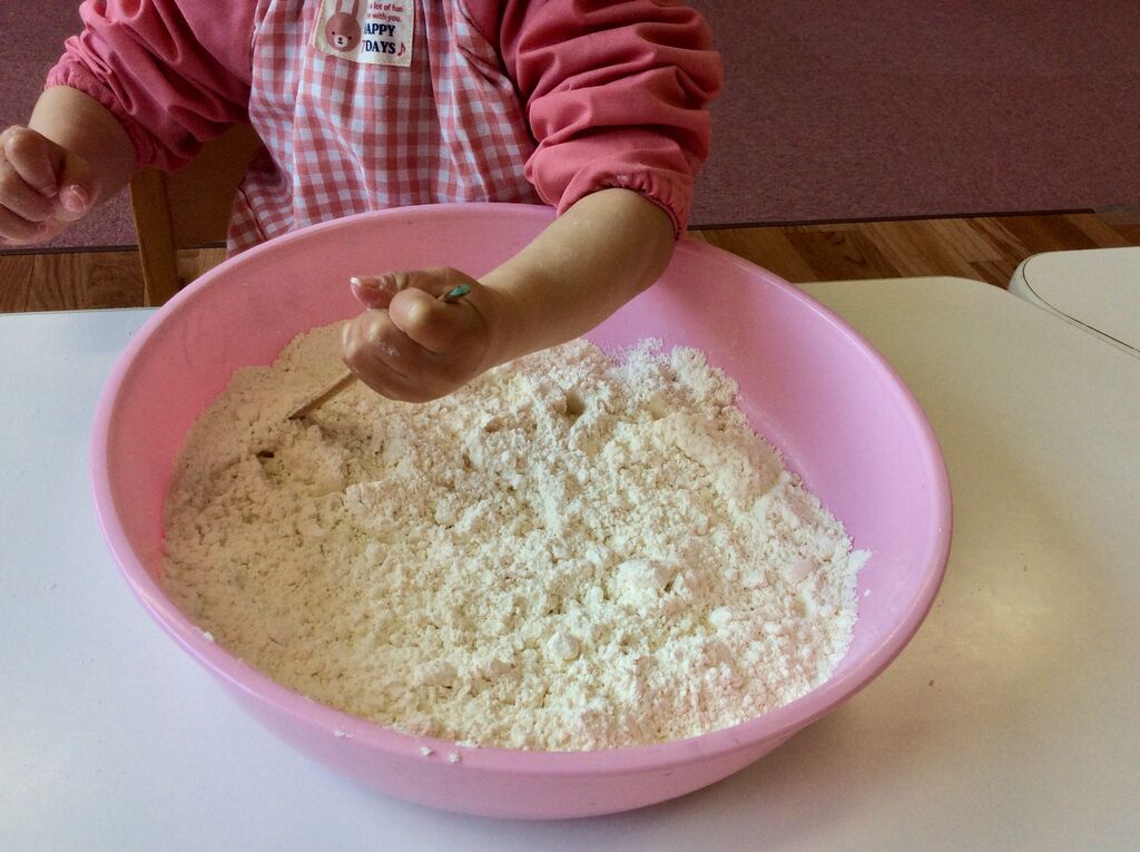 奥まで入っていた方が、小麦粉がこぼれないです!