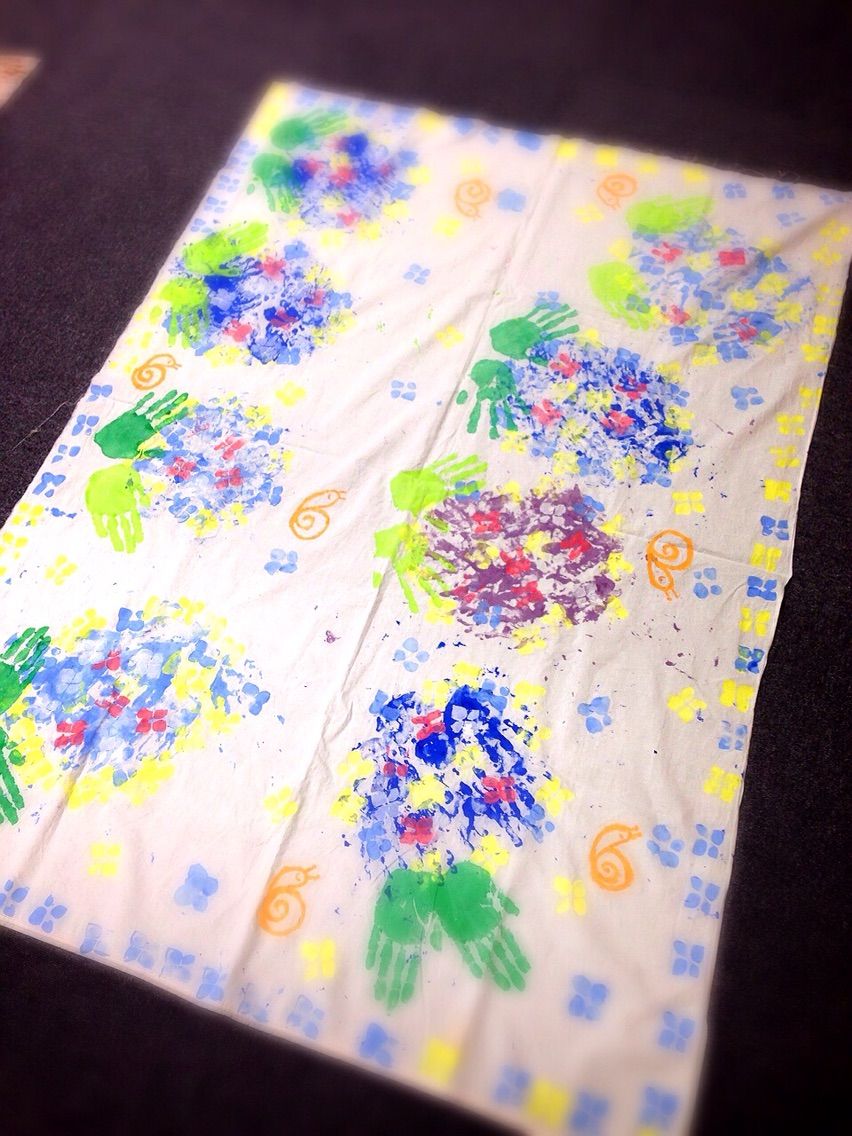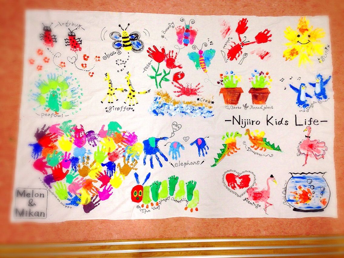 型取り、子どもたちの手型足型で全体を