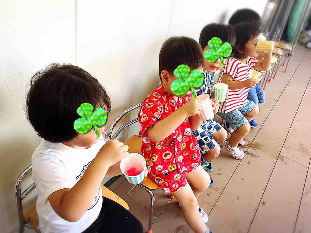 合間に、ウッドデッキでカキ氷タイム!