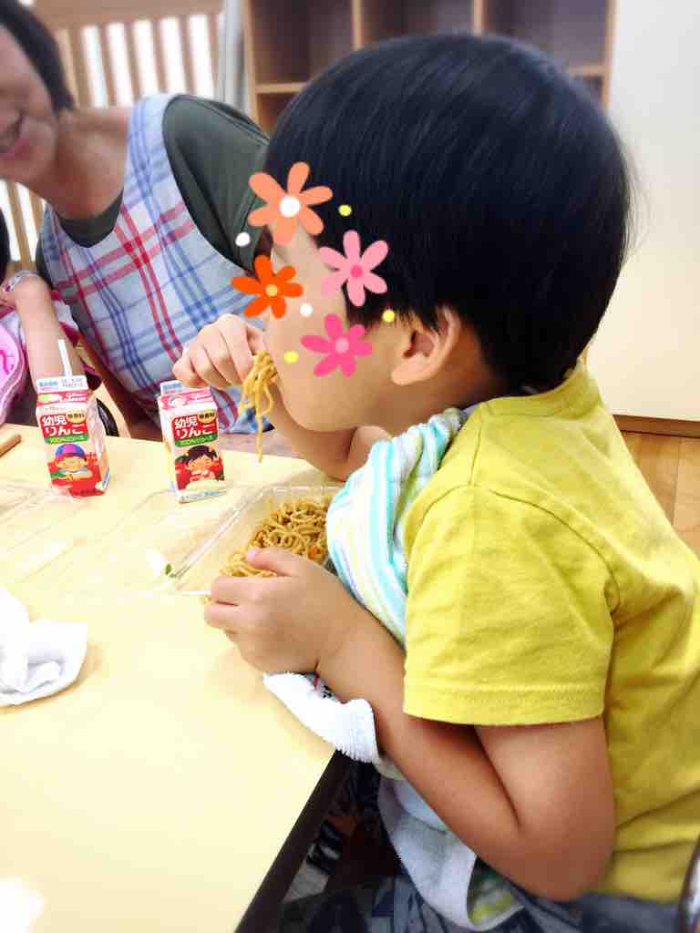 焼きそば、おにぎり、🍎りんごジュース🍹