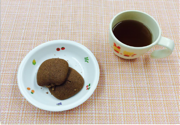 今回のおやつで例えますと、1人あたりクッキー2枚での栄養価を表示しました。体格の小さい、または活動量の少ないお子さんは麦茶、活動量の多いお子さんは牛乳50~100㏄と組み合わせるなど、エネルギーバランスは大人が確認して与えてあげましょう。
