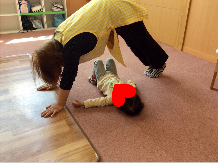 子どもにトンネル役をやってもらうことでも、様々な姿勢を体験できる機会となります!
